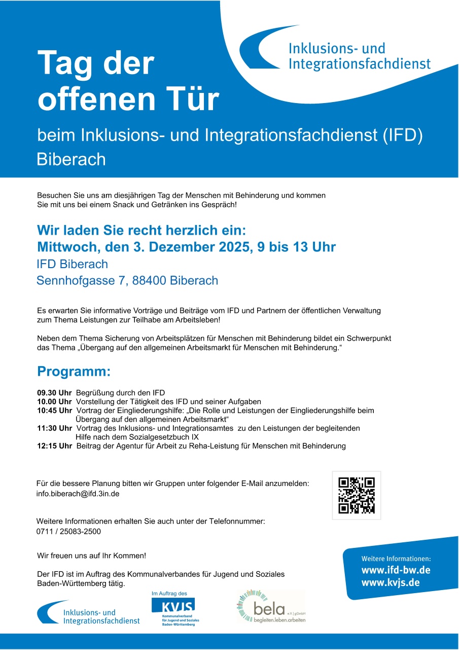 Die Einheitliche Ansprechstelle für Arbeitgeber (EAA) für den Landkreis Biberach ist beim Inklusions- und Integrationsfachdienst in der Sennhofgasse 7 in Biberach angesiedelt. Zu erreichen ist die EAA unter Telefon 0711 / 25083 2500 bzw. per E-Mail an info.biberach@ifd.3in.de. Nähere Informationen zum Thema finden sich auch unter https://www.ifd-bw.de